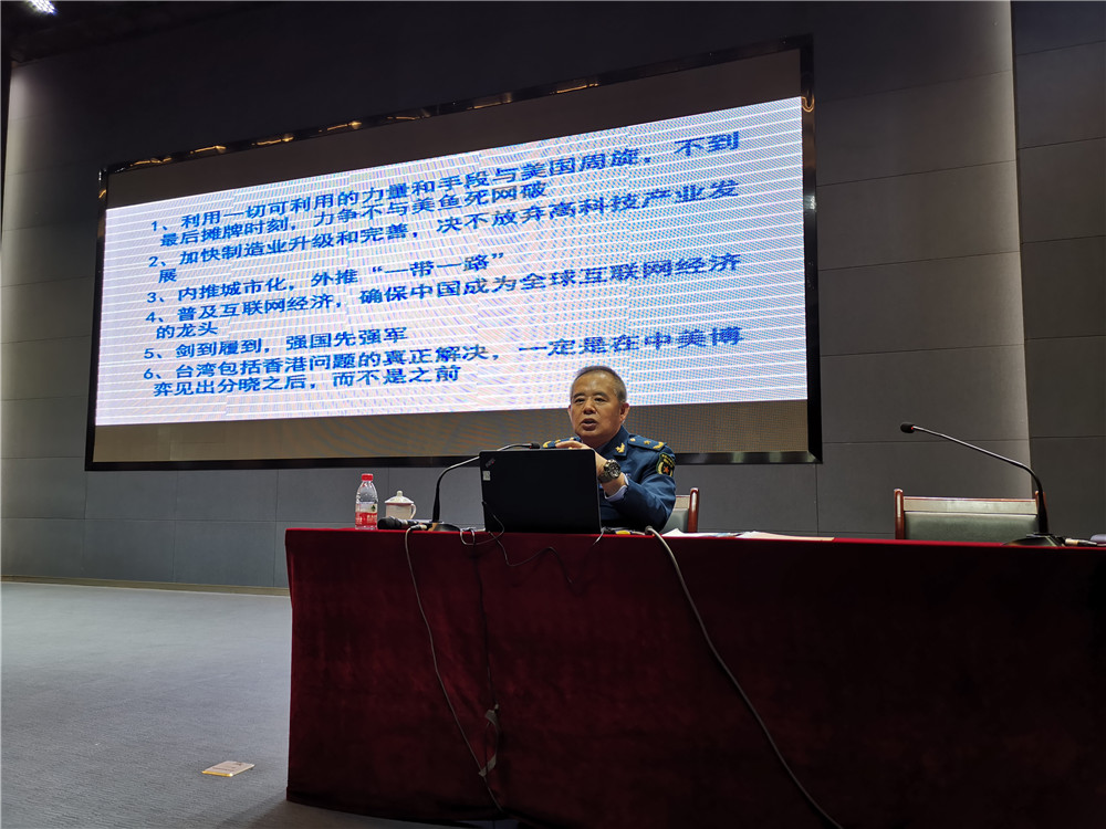 15日下午,喬良將軍在公司一樓多功能廳做了《從百年大變局看中美貿易戰》專題講座,公司中高層領導及管理人員、部分員工骨干300余人聆聽了報告。喬良將軍從中美貿易戰的深層次背景與本質、特朗普為何要發動貿易戰、特朗普面對的悖論、中國的對策與路徑四個方面進行了鞭辟入里、深入淺出的精彩講授。通過對中美貿易戰的熱點分析中,使大家對中國改革開放40年的偉大成就、中華民族的偉大復興及復興之路的戰略選擇有了全面和深入的理解。一方面,提升了全員的民族自豪感和對中華民族偉大復興的堅定信念;另一方面,堅定了公司開展民參軍業務,順應中國發展需求,實現軍工報國的決心。