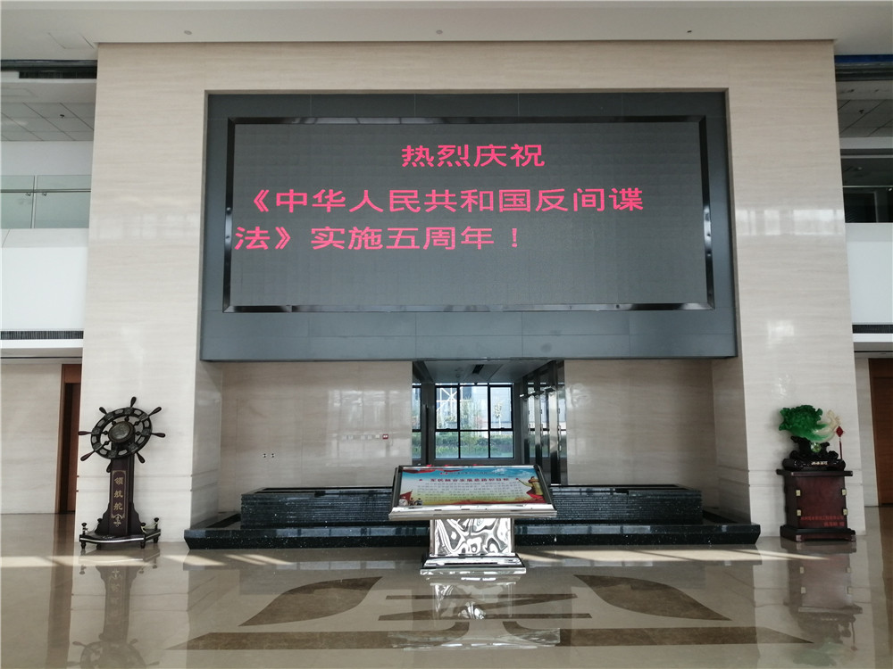 公司通過(guò)LED屏滾動(dòng)播放宣傳標(biāo)語(yǔ),大門(mén)兩側(cè)懸掛橫幅標(biāo)語(yǔ),制作《反間諜法》宣傳版面,發(fā)放《反間諜法》宣傳彩頁(yè)700余份等多種形式的廣泛宣傳,營(yíng)造了“國(guó)家安全,人人有責(zé)”的濃厚氛圍,進(jìn)一步提高員工反間諜安全防范知識(shí),使維護(hù)國(guó)家秘密,保護(hù)國(guó)家安全意識(shí)不斷加強(qiáng)。