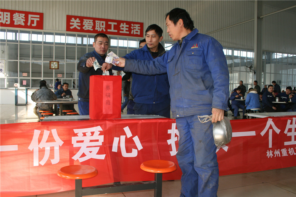11日上午,公司工會立即發(fā)出募捐倡議書。下午二點在公司辦公樓前舉行了募捐儀式并現(xiàn)場募集。公司總經理郭釧代表公司捐款10000元,公司董事韓錄云代表其家人捐款10000元,其他公司領導及機關部室、分子公司管理人員紛紛捐款,特別是與郭保紅素不相識、在我公司施工的深圳市朗奧潔凈科技股份有限公司捐款3000元,河南派普建工集團有限公司捐款1000元,供應商延津縣熱處理廠張東福看到募捐活動也捐款500元,短短不到半個小時募集捐款近4萬元。更值得一提的是原林州重機集團員工張國華,也是腎病患者,曾經得到過林州重機捐款資助的他看到朋友圈的消息后,也委托朋友捐款10元,他說:我也是一名尿毒癥患者,我也曾經得到過林州重機的捐助,現(xiàn)在我雖然還在治療之中,但我也要盡我一點心意。多么樸實的話語,多么善良的員工,一方有難八方支援,真正體現(xiàn)出了我們林州重機是一個互助友愛的大家庭。12日中午,公司工會又在職工食堂舉行第二次募捐活動,累計募捐善款 42337元。