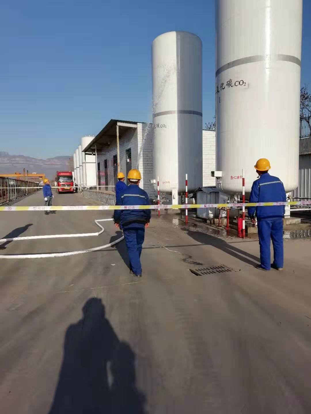 3月14日上午,在模擬現場,公司制氧站值班人員發現,二氧化碳容器罐頂溫度過高,容器隨時會發生異常現象,立即報告安全生產部并通知了動力設備部有關人員。安全生產部、動力設備部在接到制氧站電話通知后,有關人員迅速趕到制氧站現場,并在事故現場設立了警戒區,維修人員用消防水帶對二氧化碳壓力容器頂部進行水冷卻,隨著消防水的噴射,二氧化碳頂部溫度逐步降落,回到了規定的安全范圍,及時消除了安全隱患。